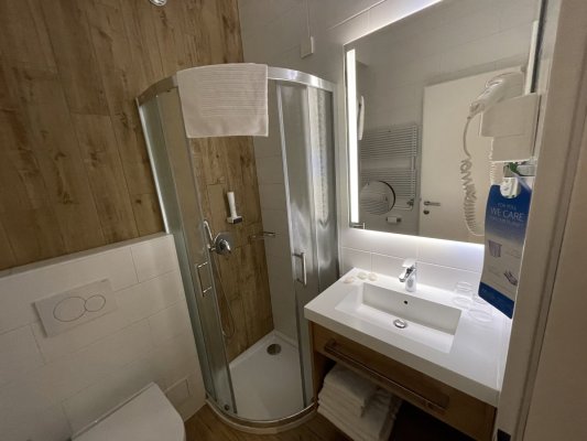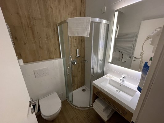 Great hotel for one night. We stayed in a triple room and we were comfortable. Modern furniture, good plumbing and clean bedding. The hotel offers ... Aún Great hotel for one night. We stayed in a triple room and we were comfortable. Modern furniture, good plumbing and clean bedding. The hotel offers a shuttle service to Ljubljana Airport. There is paid parking right behind the hotel.